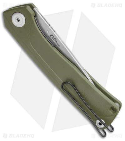 This distinctive Z200 knife model sports a olive green G-10 handle with a blade that is a tough N690 stainless steel in a drop point blade shape.