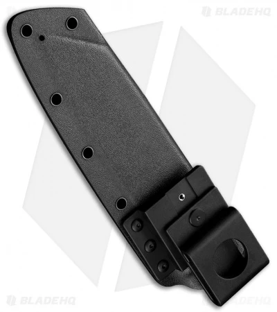 - Elongated cleaver-style blade in black made from D2 tool steel.
