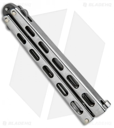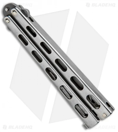 The SS14 is another great looking Bear & Son Butterfly knife. This model features a tough silver stainless steel handle and a bead blasted clip point blade. Stainless steel provides the strength and durability needed for a reliable butterfly knife. The handles also feature a skeletonized design to reduce weight. The stainless steel blade is finished with a matte bead-blast look. These knives are pretty rugged and will hold up to some abuse PLUS they are made in the USA!