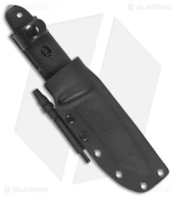- Swedish Sandvik 12C27 stainless steel, tanto, black finished blade has a partially serrated edge.
