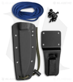 - Black grooved G-10 handle with a lanyard hole and pocket clip.