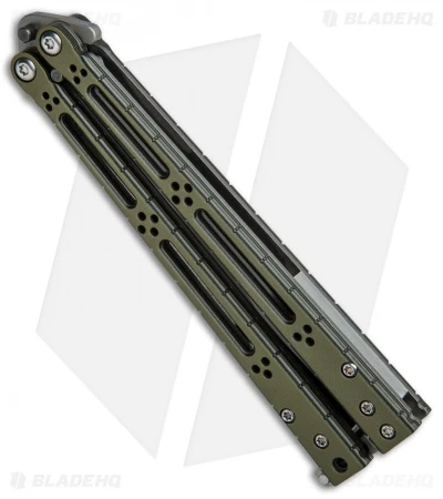 This particular Basilisk-R features green/black G10 handle scales with skeletonized titanium liners. It has a bowie style blade with a recurved edge and a bead blasted finish. Ti liners and handle jimping add to the appeal of the design. Includes a titanium latch pin and stainless steel spacers.