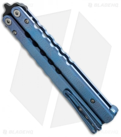 This FlyFather has solid blue orange-peel anodized handles and a pocket clip.