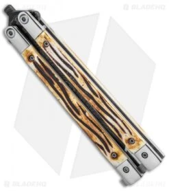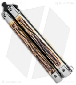 Bear Butterfly Knife W/ Genuine Stag Handle (4″ Black Plain ) 517