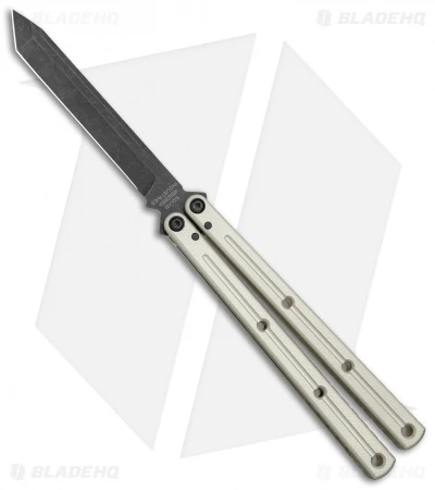 The highly anticipated Krake Raken balisong butterfly knife offers the first live-blade bali from Squid Industries. It features all of the precision-engineered smoothness of a Squid trainer, updated with a beautifully finished tanto blade. The channel constructed aluminum handles are built with rounded edges, a crowned spine, and bushings. The Krake Raken has been upgraded from 6061 to a 7075 aluminum alloy, which boasts a higher strength and is more durable to drops and use.