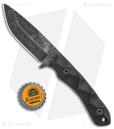 - Rock-textured black G-10 handle scales over a full tang.