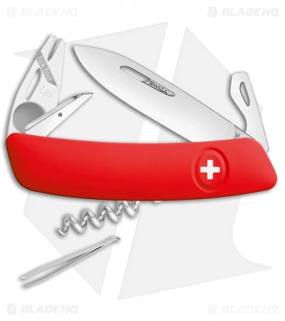 This Swiza TT03 Tick Tool pocket knife offers a revolutionary redesign of the traditional Swiss pocket knife. It features a soft touch red polymer handle with a rubberized texture for a sure grip in difficult conditions. The blade is made from 440 stainless steel with a polished satin finish. It locks in place with a liner lock mechanism that is easily released by pressing the Swiza cross button.