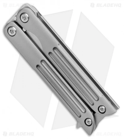 The Terrain 365 Balisong is much smaller than most balisongs, coming in at only 2.5″ when closed. It features a sandwich titanium handle, a titanium latch and pocket clip, and a spear point blade with a fuller groove.