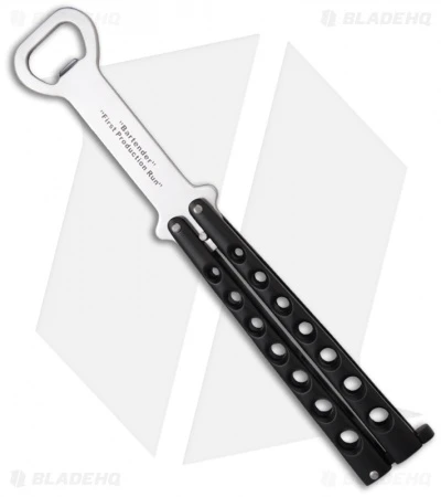 The Bartender “Bottle-Fly” Butterfly Knife Bottle Opener (Black/Silver)