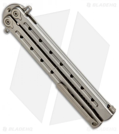 The WE Nerv is a butterfly knife trainer and a comb! Now, you can make sure your hair is as fresh as your butterfly knife skills. It uses ceramic ball-bearings for the pivot, so this balisong is smoooooth. The handles are channeled titanium with an impressive milled texture. It includes a reversible pocket clip for left or right hand carry. Step up your butterfly knife game while keeping your hair on fleek.