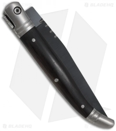 This Zayka is a slip joint knife with a slim, sleek design that is great for use as a pocket knife. It features a black ceramic clip point style blade with a plain edge. The handle has satin finished bolsters and riveted dark wood inlays that offer a fine overall look. This knife opens with a nail nick and uses a slip joint mechanism. This is a nice knife that looks and feels great.